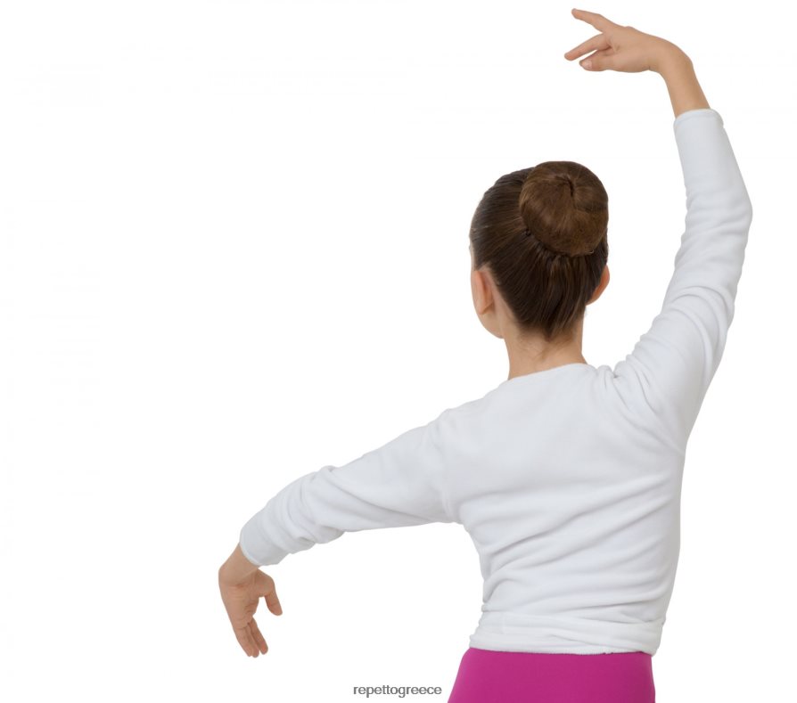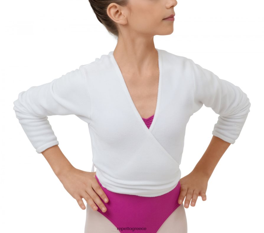 λευκό κάλυμμα με μακριά μανίκια για νεαρή χορεύτρια. ιδανικό για ζέσταμα. Η προθέρμανση είναι ένα ουσιαστικό βήμα για όλους τους χορευτές, ανεξάρτητα από το επίπεδο του χορού τους, τα είδη προθέρμανσης είναι άνετα και προσφέρουν εξαιρετική θερμική προστασία. κορδόνια περίσφιξης για κόμπο στο πλάι, λαιμόκοψη. λογότυπο repetto κεντημένο στο μανίκι σε αντίστοιχους τόνους.
