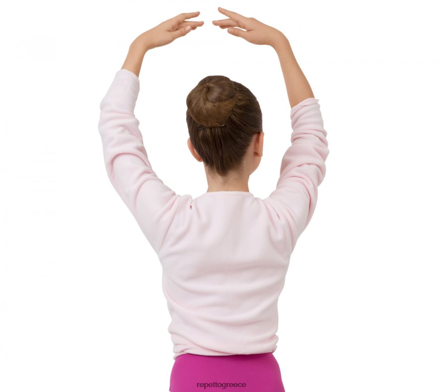 Απαλό ροζ κάλυμμα με μακριά μανίκια για νεαρή χορεύτρια. ιδανικό για ζέσταμα. Η προθέρμανση είναι ένα ουσιαστικό βήμα για όλους τους χορευτές, ανεξάρτητα από το επίπεδο του χορού τους, τα είδη προθέρμανσης είναι άνετα και προσφέρουν εξαιρετική θερμική προστασία. κορδόνια περίσφιξης για κόμπο στο πλάι, λαιμόκοψη. λογότυπο repetto κεντημένο στο μανίκι σε αντίστοιχους τόνους.