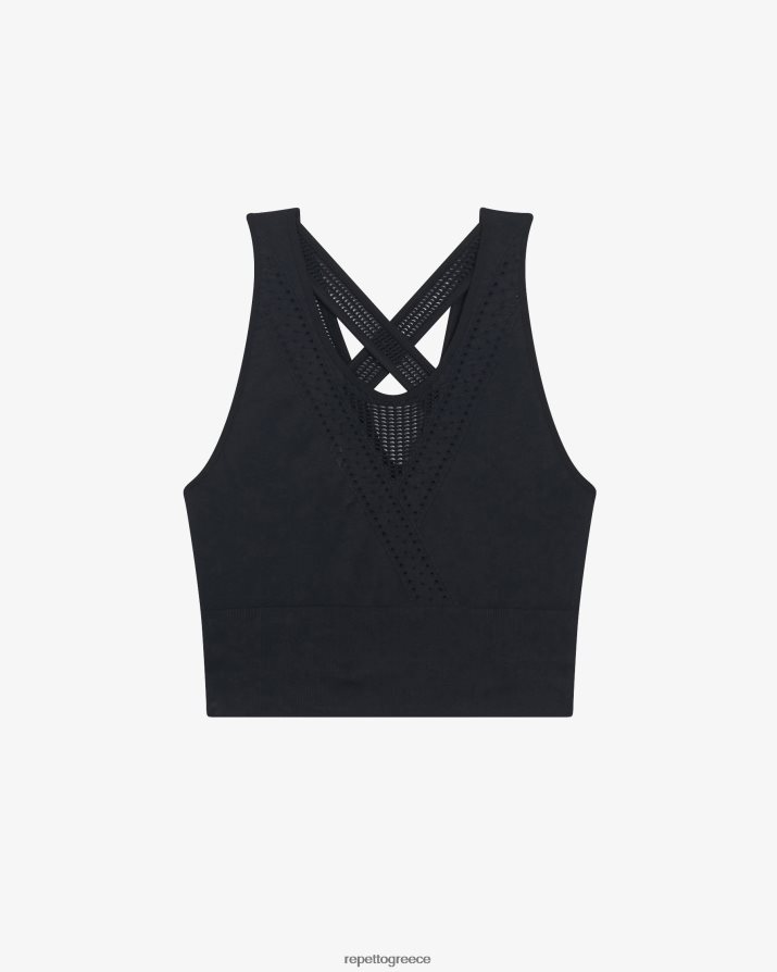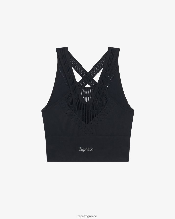λεπτομέρειες: φανταχτερό σουτιέν χωρίς ραφή. στρογγυλεμένη λαιμόκοψη μπροστά. φανταχτερές βελονιές μπροστά και πίσω. λογότυπο repetto σε ζακάρ στο πίσω μέρος.
