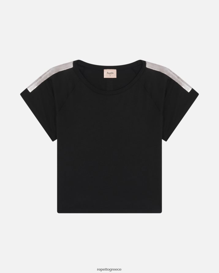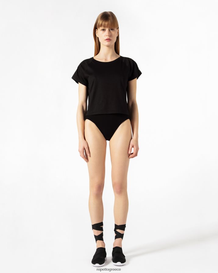 λεπτομέρειες: κοντομάνικο τοπ από ρεγκλάν. στρογγυλή λαιμόκοψη. τετράγωνο σχήμα. ταινία με μαργαριτάρι και λογότυπο repetto.
