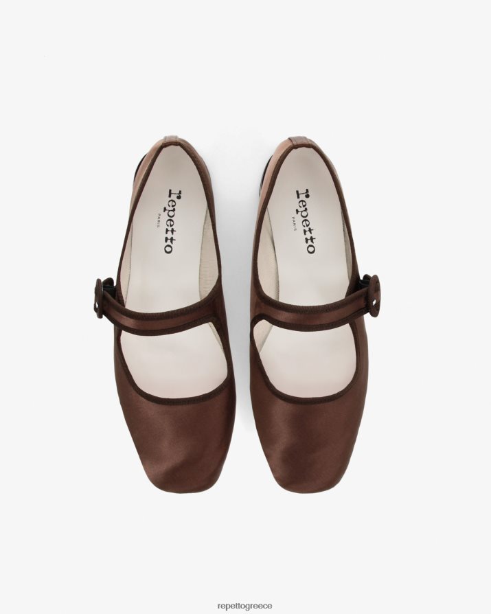 Κατάλογος| γυναίκες| παπούτσια| Mary Janes| georgia mary janes - σατέν καφέ μόκα είδη υπόδησης Repetto D8N66R150 γυναίκες