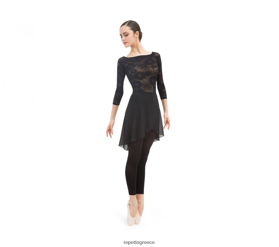 η γυναικεία φούστα είναι μέρος του ντυσίματος της χορεύτριας. τοποθετημένο στο κορδόνι, μπορεί να φορεθεί σταυρωτά ή με κόμπους από άκρη σε άκρη στο πλάι με τα κορδόνια περίσφιξης. το ημι αδιαφανές σιφόν δίνει μια ματιά στην τοποθέτηση των γοφών και αφήνει να δούμε τη δουλειά των ποδιών. διαφανής μεταφορά του λογότυπου repetto.